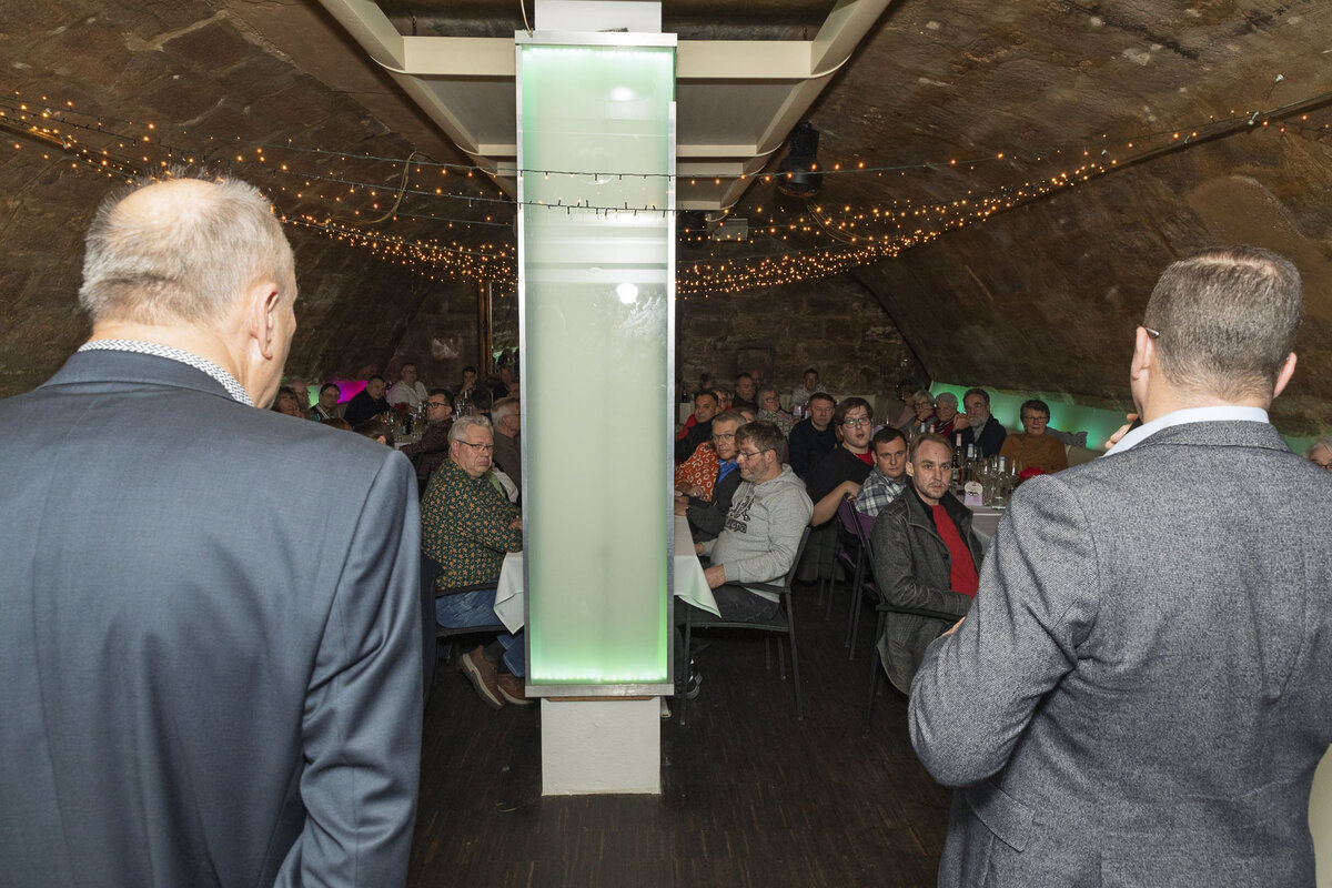 Die beiden Geschäftsführer der Weiss Unternehmensgruppe Ralf Schmidt und Norbert Weiß waren bei ihrer Begrüßung wirklich beeindruckt von dem großen Interesse und bedankten sich nicht nur für das Erscheinen, sondern vor allem für das Engagement und den Zusammenhalt im abgelaufenen Jahr.